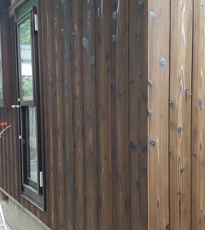 M様邸の外壁焼き板貼りの進捗です! 残すところは、この一面!…