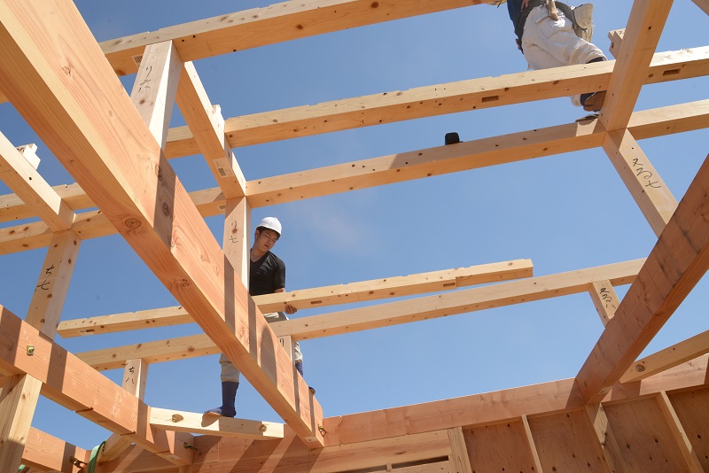 ルーフィングも施工され、無事に屋根まで組みあがりました\(^o^)/