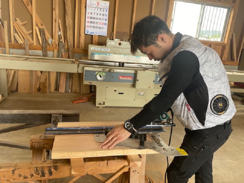TVボードのプランを元に、お客様の使い勝手を考えて、微調整を加えて丁寧に仕上げていくひろとさんです。