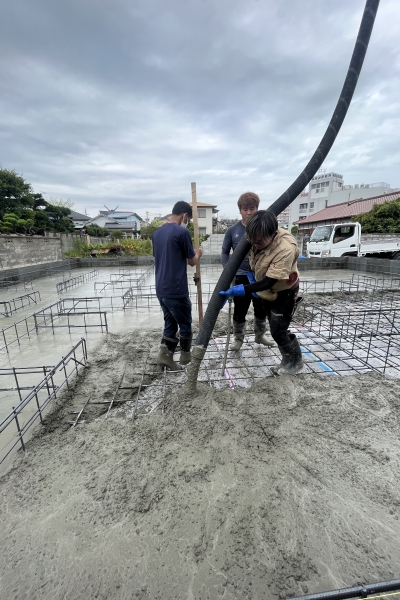 立ち上がりのコンクリートを打ち、養生期間を経て型枠パネルを取…