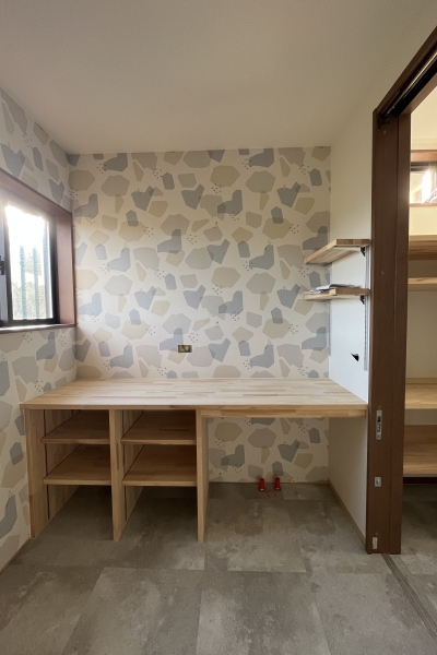 内装工事 壁紙はポップな感じで明るいですね^-^