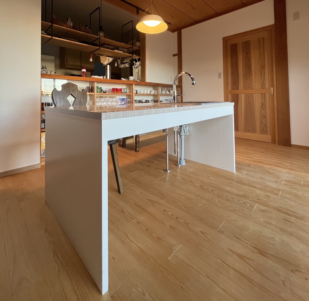 車椅子に座ったまま楽な姿勢でお使いいただけるダイニングテーブル兼調理場です^-^