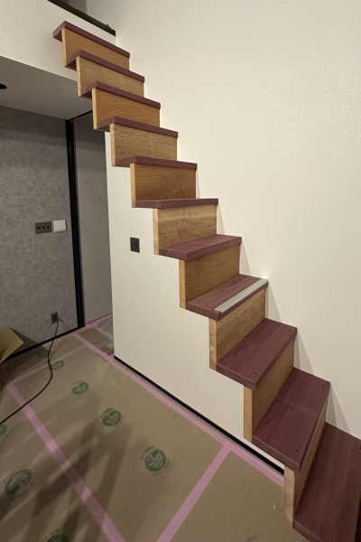 踏板の材種はパープルハート、蹴込はケヤキとサクラです。