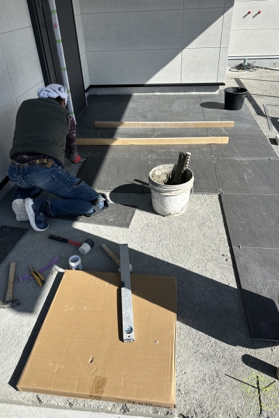 玄関ポーチ タイルを張っていきます。