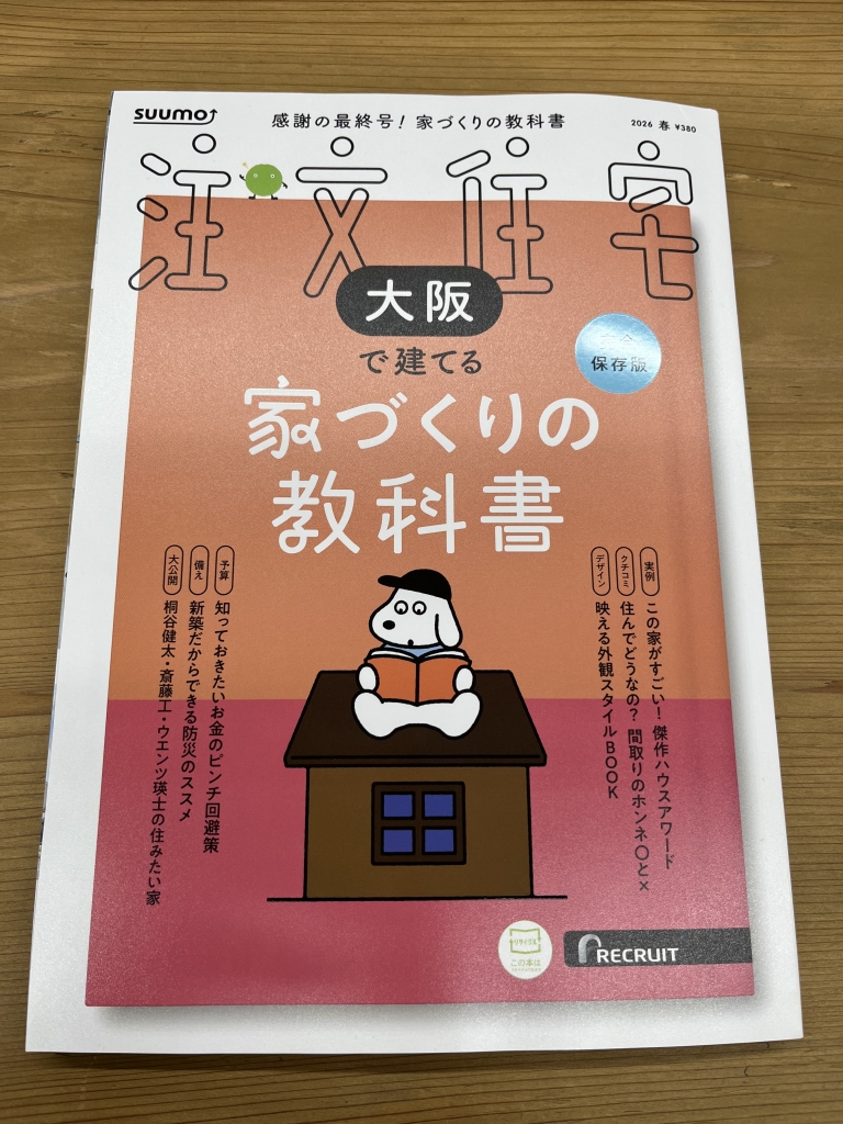 リクルートさん発刊の「SUUMO 注文住宅 大阪で建てる」が本日発売です。